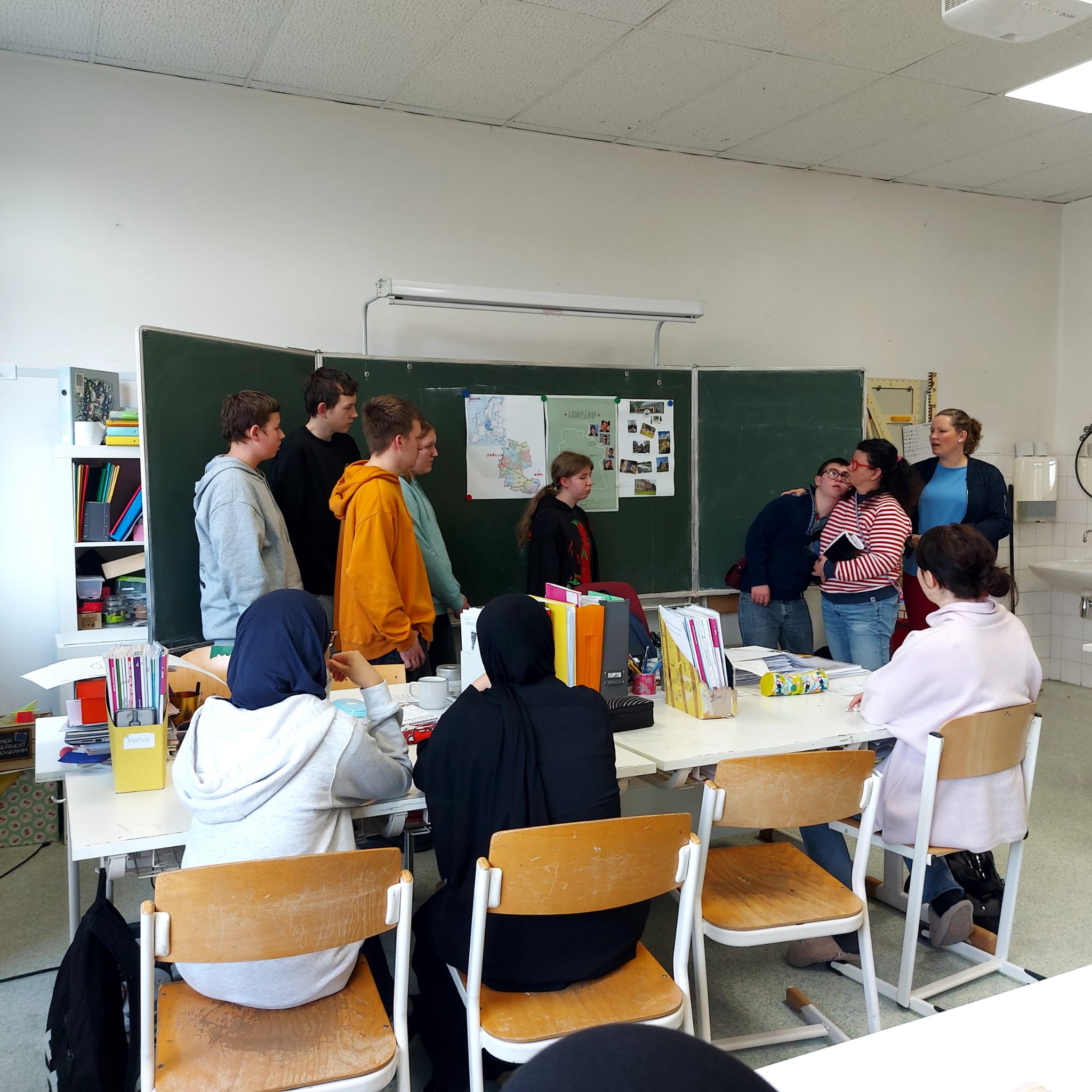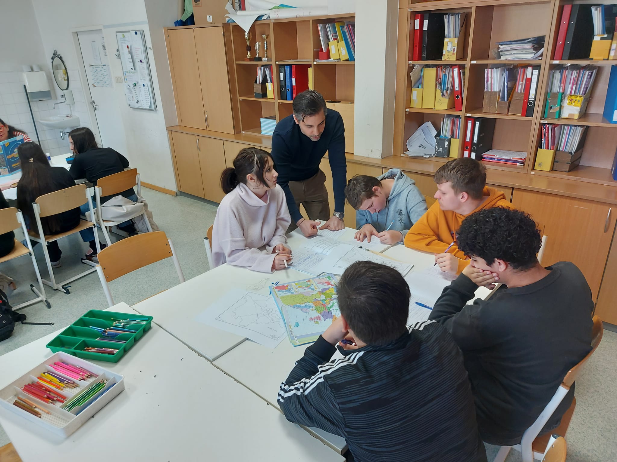 In gemischten Kleingruppen wurde in den Klassenräumen fleißig zusammengearbeitet. Ob bei der gemeinsamen Projektarbeit am Tisch, beim Diskutieren über Landkarten oder bei kreativen Zeichen-Workshops – die Schüler*innen konnten sich austauschen und schnell neue Freundschaften knüpfen.